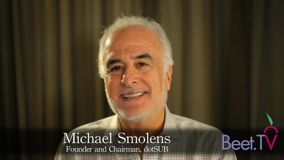 70 percent of all video views on global video platforms like YouTube come from foreign ISPs, yet 99 percent of the content is in English, explains dotSUB Founder and Chairman Michael Smolens. dotSUB seeks to make this English content available to everyone, offering a service that enables video on the web to be time-coded and captioned, and then subtitled into any other languages.