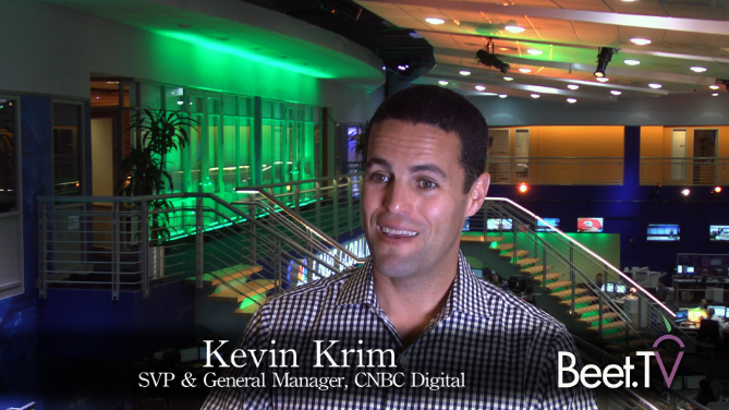 Viewing via the desktop, notably in the workplace, will greatly expand the footprint of the business television network. It will provide a new source of advertising as entirely different ad inventory can be served into the live stream, explains Kevin Krim, SVP and GM of CNBC Digital, in this interview with Beet.TV