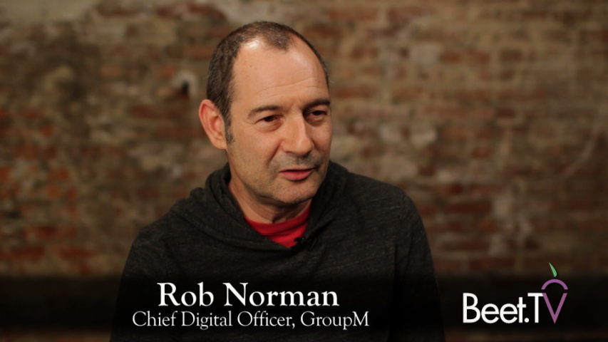Given GroupM’s tough viewability standards, Norman observes that at the moment, Facebook “is actually not in the sweet spot of the GroupM viewability standard because Facebook, broadly speaking, is a sound-off environment and it’s a short-duration environment.” Nonetheless, GroupM is buying “a considerable if not massive amount” of advertising on Facebook and Twitter as it looks at high-level effectiveness measures around recall.