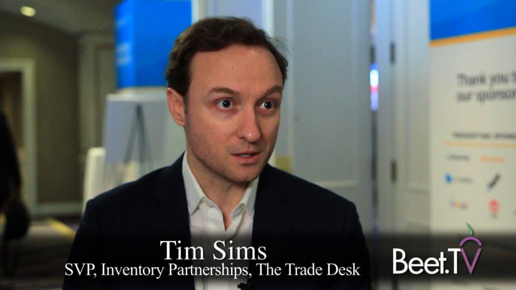 “Connected television spend on our platform from Q4 2016 to Q4 2017 grew over 500%,”The Trade Desk inventory partnerships SVP Tim Sims tells Beet.TV in this video interview.