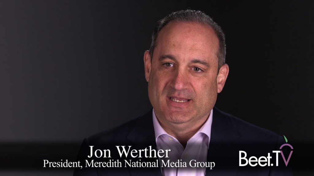 As for Meredith’s value proposition for advertisers, “We can drive results as no one else can” and the company is “willing to stand behind that with results guarantees like our sales guarantee to drive unparalleled return on advertising spend,” Werther says.