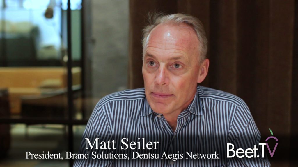 Reflecting on the annual Upfronts and NewFronts, Dentsu Aegis Network’s Matt Seiler loves the plethora of television content choices. “That we’re still talking about Upfronts and NewFronts and so on cracks me up, but whatever. Be that as it may, they continue,” says the President of Brand Solutions for the global network.