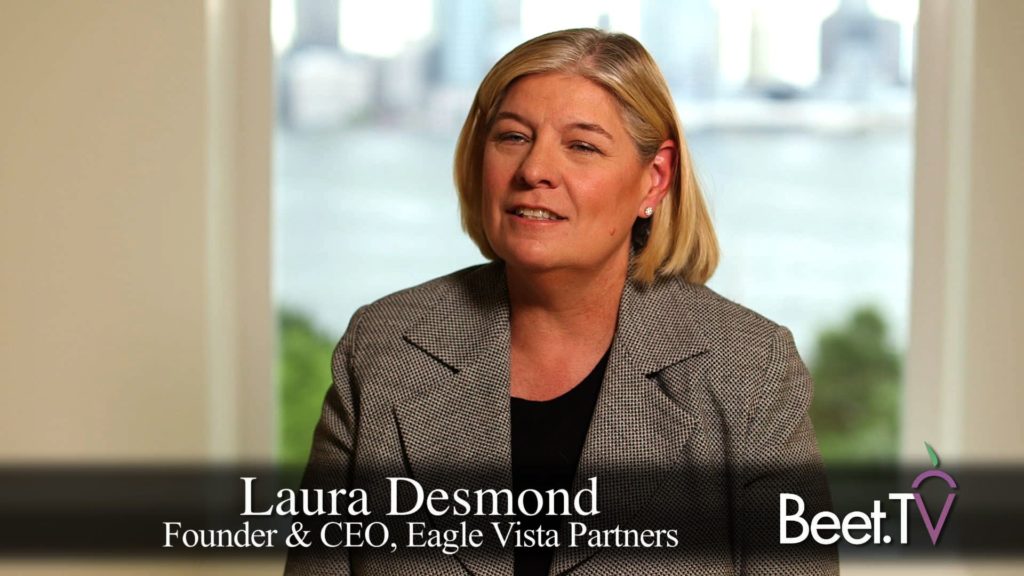 Asked by Swartz, who is CEO of Furious Corp., for an update on her work life after leaving Starcom at the end of 2016, Desmond says she is an operating partner with Rhode Island-based Providence Equity Partners. She’s involved in two deals: one for adtech firm DoubleVerify and one for a sports marketing firm in Europe.