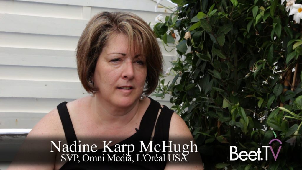 CANNES – While L’Oreal USA’s Nadine Karp McHugh is happy to hear lots of conversations by television networks about how to improve the viewer advertising experience, she’d like to hear more marketer voices giving their input. “I think that’s really important to solve for. But they should start with not only the consumers but also their customers, which are the marketers,” says McHugh, who is SVP, Omni Media.