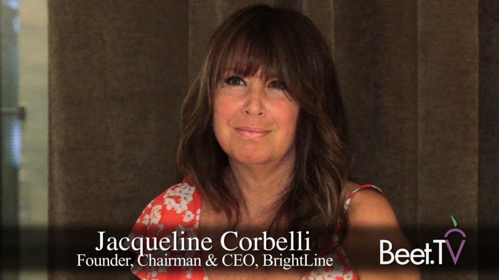 “What we’ve done is we’ve created a further opportunity beyond enhanced ads at scale for brands to buy household addressable and targeted ads across the entire OTT landscape,” says Jacqueline Corbelli, who is Founder, Chairman and CEO of BrightLine.