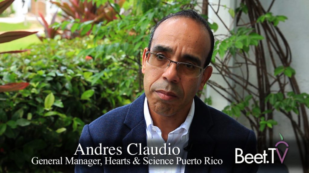 SAN JUAN, Puerto Rico—What happened in Puerto Rico following Hurricane Maria in September of 2017—with broadcast and cable television lacking a power grid—can be considered a “test market,” according to Andres Claudio. Among other changes over the past year, media agency Hearts & Science Puerto Rico now does more “real-time” media planning as people continue to migrate from cable TV to digital media.