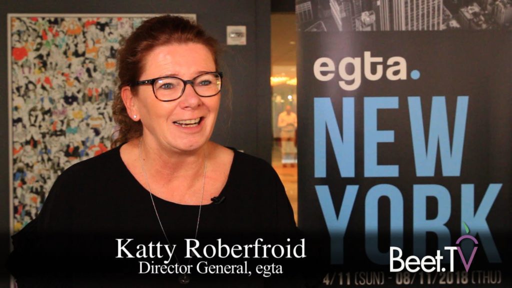 “If you need to make a name for yourself big time, quickly, I believe and we all believe, that this total video environment, and definitely TV, is the place to be – that’s how you build a brand,” EGTA director general Katty Roberfroid says in this video interview with Ashley Swartz for Beet.TV