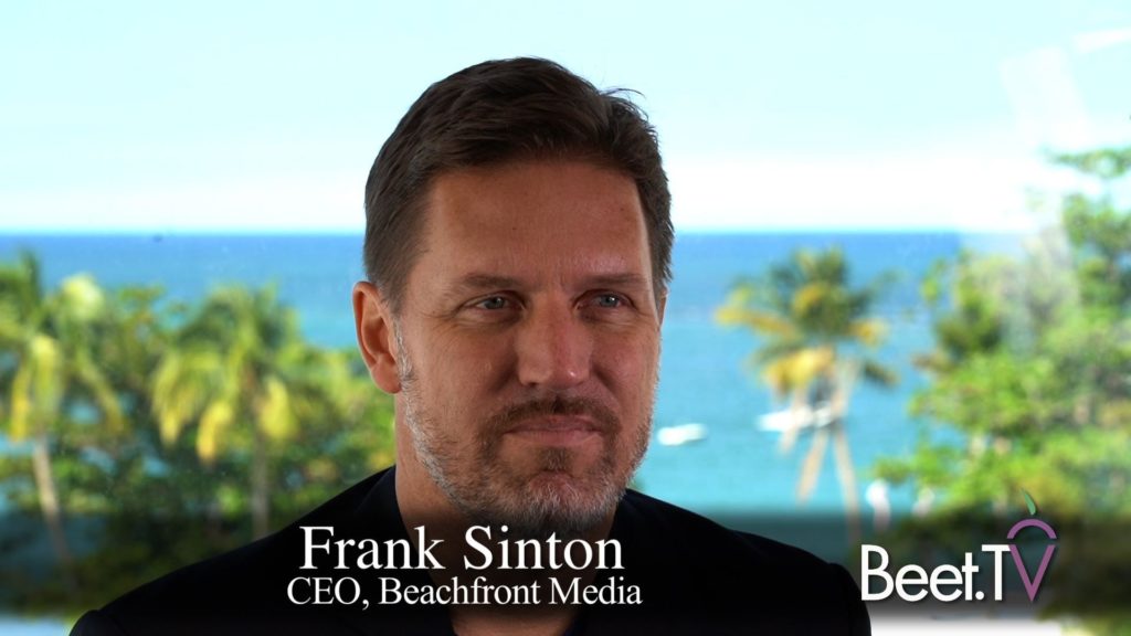 Given that it can take three to five days to traffic a campaign to linear TV, Beachfront would like to reduce that to three to five minutes. Its goal is to “create a much more real-time, biddable environment for this super premium TV audience. That’s the next big phase I think we’re going through over the next three to five years,” says Sinton.