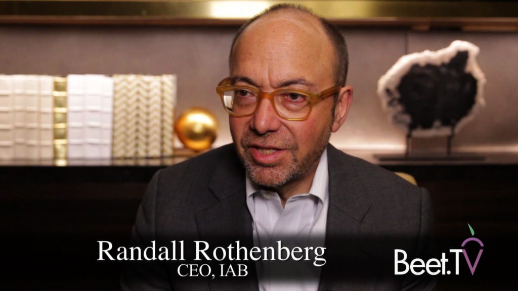 In this video interview with Beet.TV, IAB CEO Randall Rothenberg says he sees an “explosive opportunity for television networks” – the growth in direct-to-consumer brands, many of them wholly digital – which need to gain consumer awareness outside of the hyper-competitive digital environment.