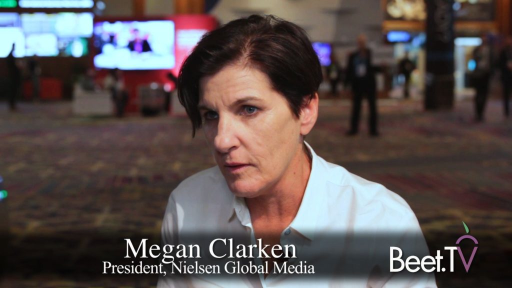 LAS VEGAS–At this stage of cross-platform advertising, Nielsen has positioned itself to comparable advertising measurement components. It’s up to the industry to solve “for those sets of rules that pulls the measurement together,” says Nielsen Global Media President Megan Clarken.