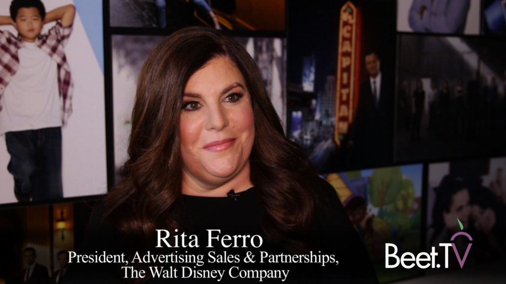 The house of brands is now more unified than ever following the consolidation of sales efforts this fall under Ferro, who is President of Advertising Sales & Sponsorships in a unit called Disney Advertising Sales. In this interview with Beet.TV, Ferro recalls taking over the ABC/Disney/Freeform portfolio about 18 months ago and having happy advertisers respond “Where’s ESPN?”