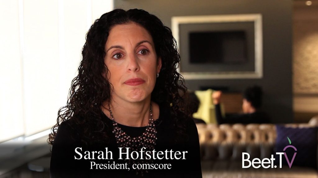 While the opportunities around premium video are “extraordinary,” educating the buy-side about cross-platform execution has long been a common industry theme. For Comscore, which has seen many changes over the past year, it’s more of a re-education process, according to President Sarah Hofstetter.