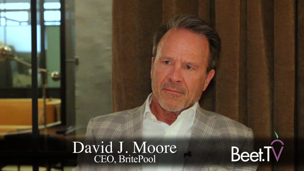 Moore is the new CEO of the company, which was spun out of Sonobi, and is also funded by MediaMath. BritePool has rebadged Sonobi’s Universal ID as BritePool ID, has taken 10 of its engineers and has created a “steering committee” of 17 members to guide development. Launch is slated for the summer.