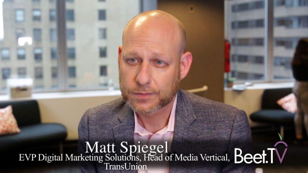 “One of the things we’re spending a lot of time on is where is new consumption happening and what’s the identity signals in that new world,” says Spiegel, who joined TransUnion last August from MediaLink. “And a lot of that has to do with certainly not only devices but IP-based content.”