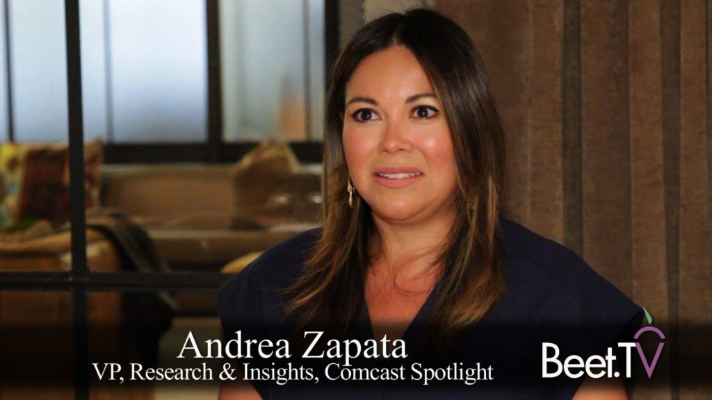 Advertisers need to open up a bit on the way they’ve been buying television so as to best maximize their campaigns, says Comcast Spotlight’s Andrea Zapata. “For us what we’ve learned is that our clients are traditionally buying us still in ways that they’ve been doing for years,” says the VP of Research & Insights at the ad sales division of Comcast Cable.