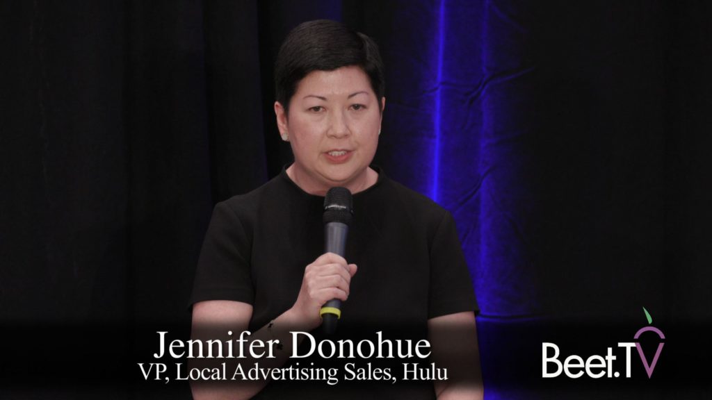 “At Hulu, the nice thing about our local team is that we can execute with an ease on the client side,” Donohue said. “You can buy every DMA (designated market area) in the United States or you can buy down to one zip code.