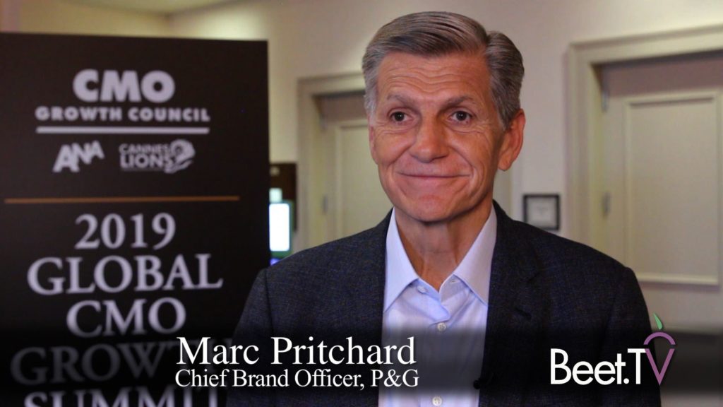 ORLANDO – Ahead of his panel during the 2019 Global CMO Growth Summit, P&G chief brand officer and co-chair of the ANA Marc Pritchard spoke to Beet.TV to give an overview of his outlook on the industry. It starts with disruption. “Everyone’s being disrupted,” says Pritchard. The only way to deal with disruption is to lead it, he adds.