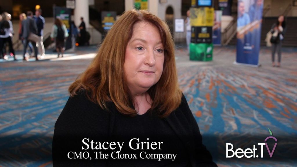 Grier, who spoke with Beet.TV at the ANA Masters of Marketing Conference, has a creative agency background that influences that view. For now, she says storytelling mostly plays a role in Clorox’s TV strategy.