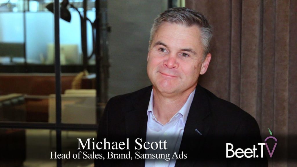 “Savvy marketers have really leaned into the ability for advanced television deliver targeted audiences, much like they’re used to seeing in the other digital platforms,” says Michael Scott, the head of brand sales for Samsung Ads in North America.