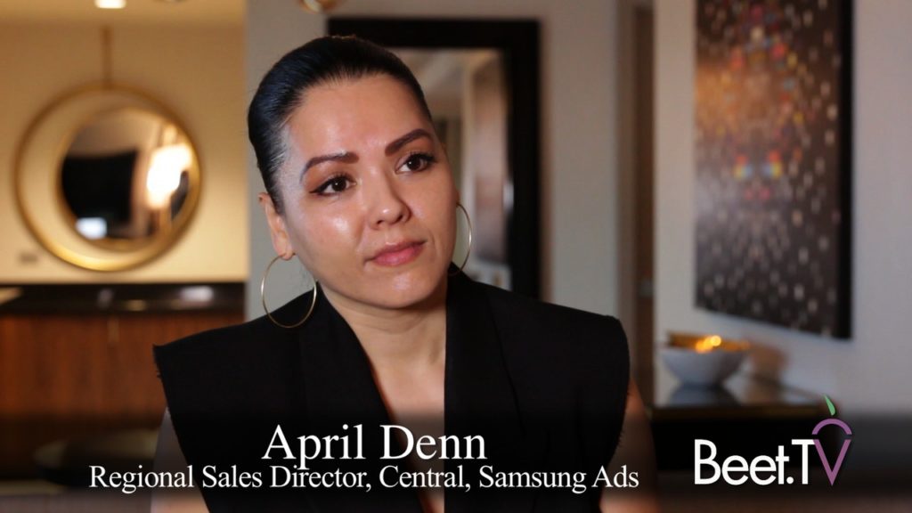 Having the largest, most comprehensive source of TV data available in the market has tremendous advantages. In an interview with Beet.TV, April Denn, regional sales director for Samsung Ads, explains that with this data, the company is looked at to solve three main problems.