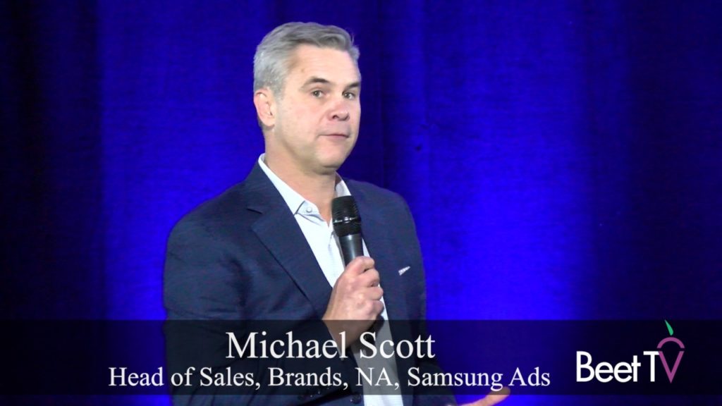 In this townhall discussion for Beet.TV, Michael Scott, Samsung Ads’ head of brand sales in North America, was asked what role mobile plays in his connected TV offering.