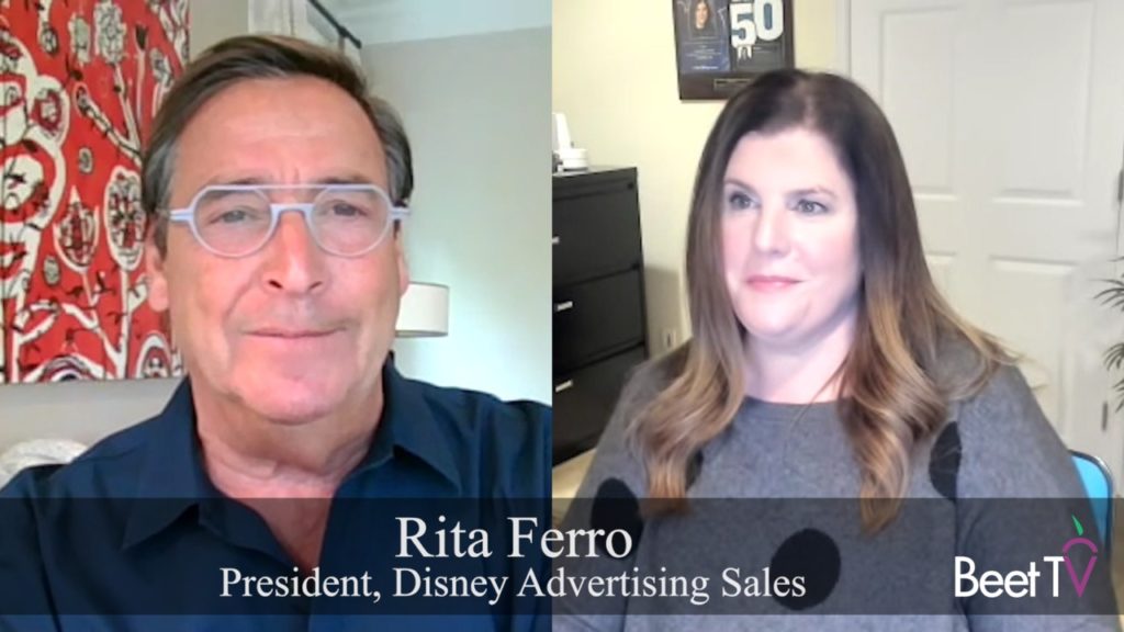 Rita Ferro, president of Disney Advertising Sales, said investments in original programming are central to her company’s strategy to reach audiences on any device. In this episode of the Beet TV/VAB “TV Reset” forum, Ferro discusses Disney’s efforts to develop content for its lineup of streaming and linear TV brands.