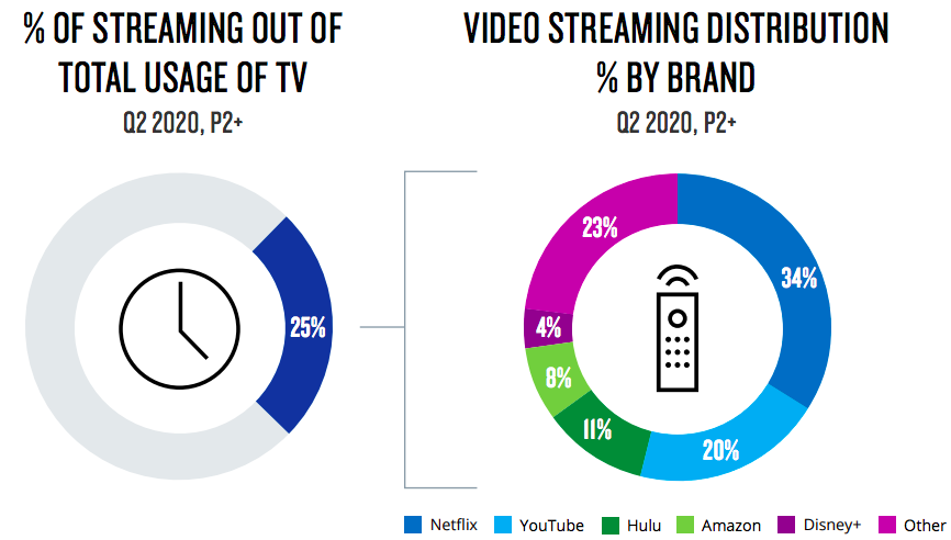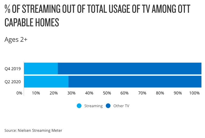 According to its Streaming Meter, a panel of almost 1,000 streaming-capable US homes, streaming’s Q2 2020 share is up from the 19% it represented in Q4 2019.