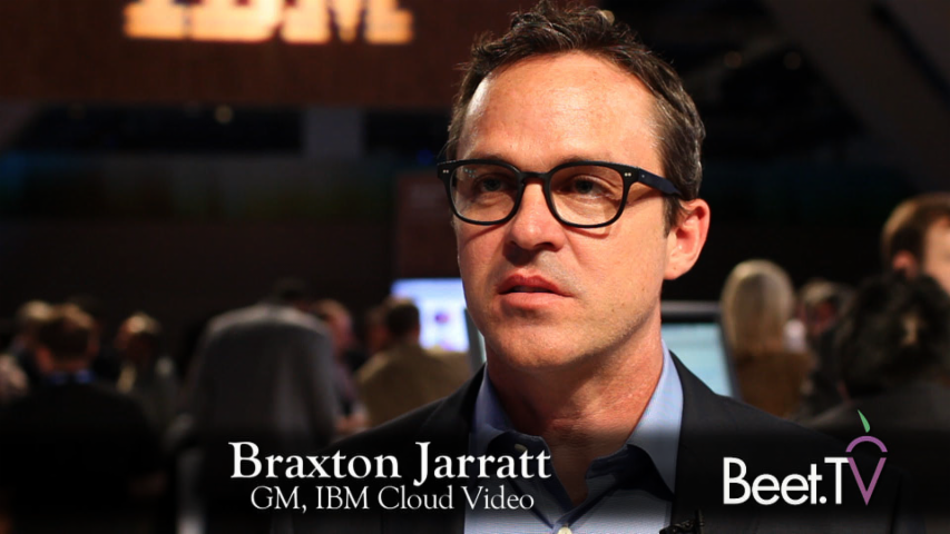 The company best known for its mainframe computer heritage is a growing global presence in cloud-based video services, owing in part to its recent acquisition of live-streaming startup Ustream. News of the company’s deals to provide online video solutions to AOL, CBC, Comic-Con and Mazda broke this week at the 2016 NAB Show of the National Association of Broadcasters, where Beet.TV interviewed Braxton Jarratt, GM of IBM Cloud Video.