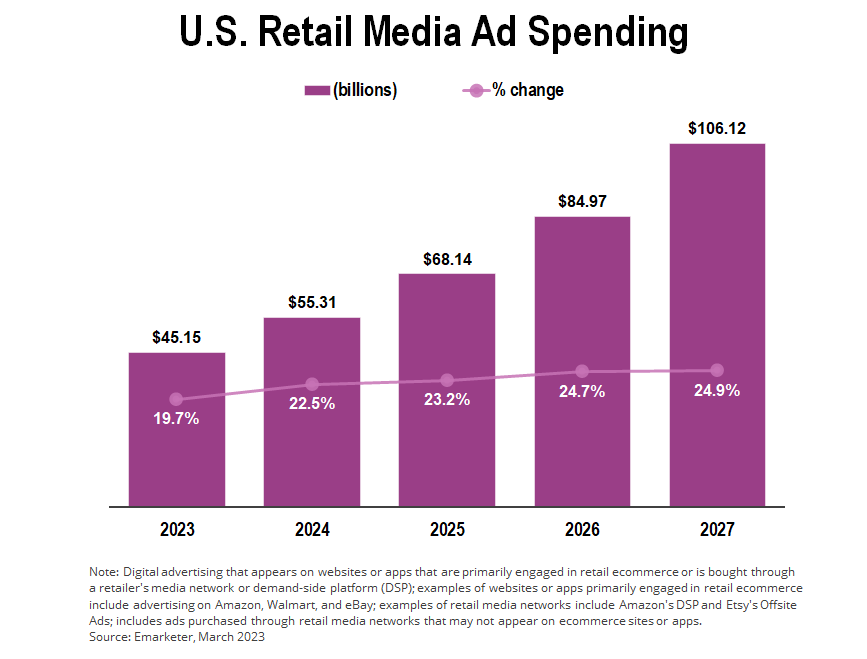 Walmart has formed relationships with third-party vendors as part of the buildout of its retail media network. Those companies include streaming company Roku, ad-tech company The Trade Desk, streaming video service Paramount+ and social-media company Pinterest.