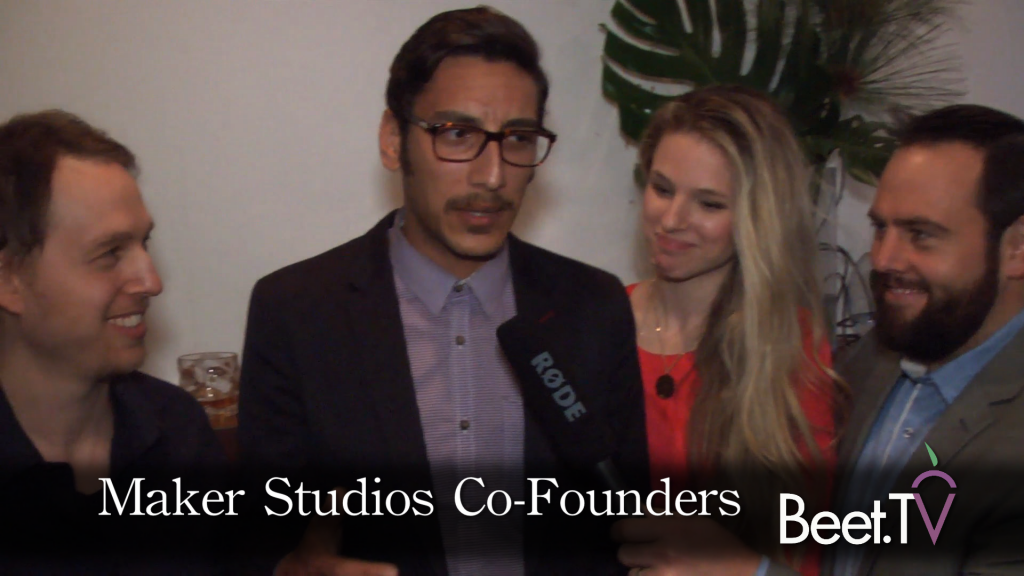 Mega-popular YouTube channel Maker Studios recently sold to Disney for $500 million, but when the founders launched the company five years the goal was quite simple — make videos and share audiences. “We just liked making videos. We didn’t start it to sell to Disney someday; we were just a bunch of friends who liked hanging out,” says Shay Carl, a co-founder, in this interview with Beet.TV featuring four of the Maker founders. We interviewed them at the Maker Studios NewFront last night.
