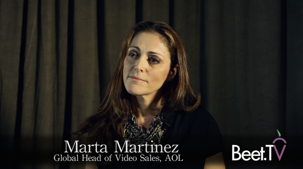FORT LAUDERDALE – One of AOL’s goals these days is to help guide ad partners through the complexity of today’s digital marketplace, says Marta Martinez, Global Head of Video Sales, AOL Inc., at the Beet.TV executive retreat this past weekend. “A lot of my role is education and working with advertisers on the best marketing tactics above the line and below the line,” she says, adding that consumer behavior data can help understand how to better reach viewers, whether through addressability, programmatic or other means.